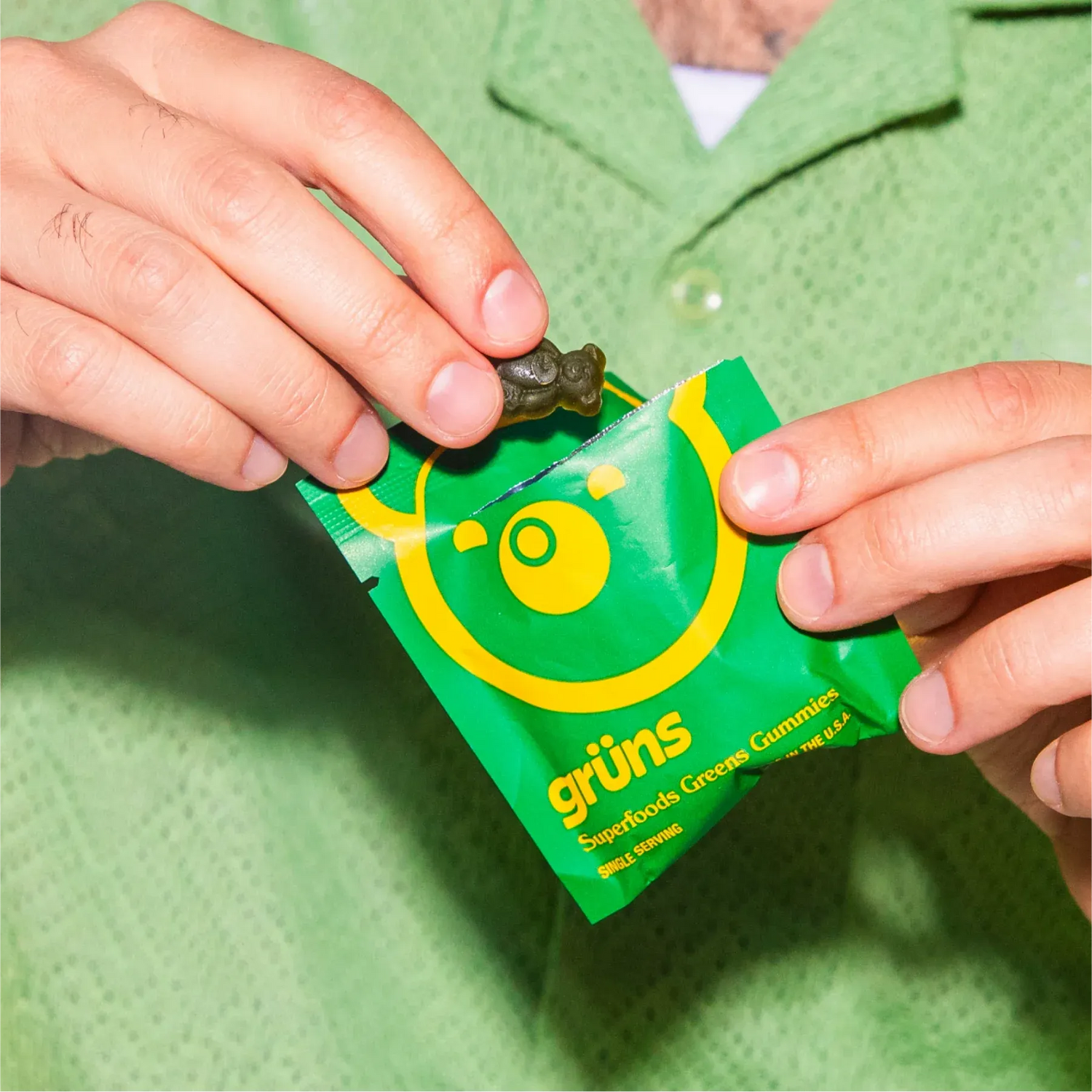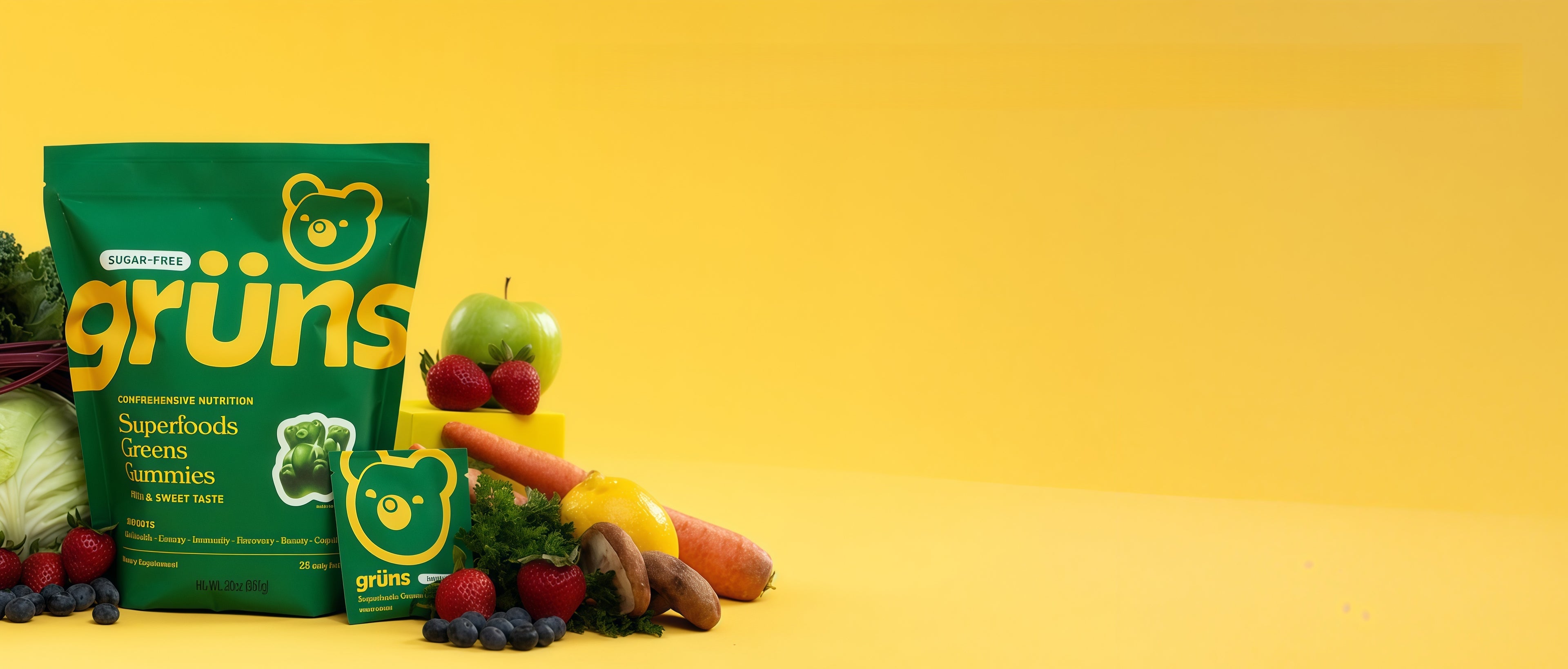 Grüns is formulated to help nutrient deficient people fill the nutrient gaps with our snackable, packable gummies. Enjoy the beary best way to get comprehensive nutrition and fill your nutrition gaps every day with Grüns!