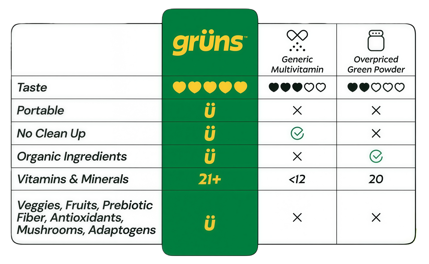 At Grüns, we believe that foundational nutrition should be simple and convenient for everyone.